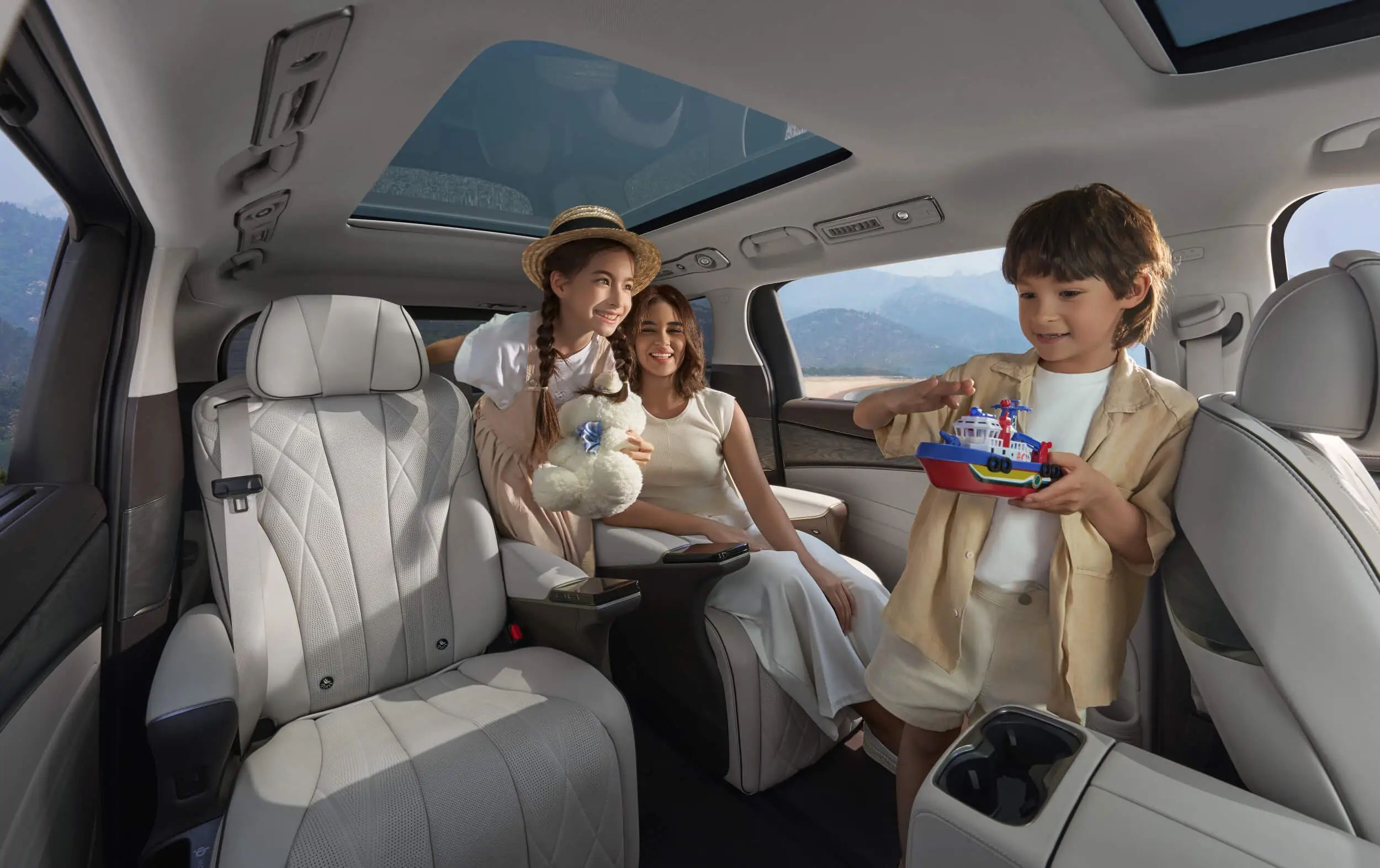 Atap panorama yang luas memenuhi kabin dengan cahaya alami, sementara kaca lapis ganda menghalangi 99% sinar UV.